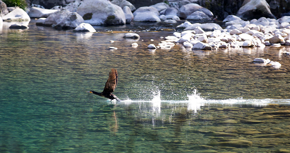 青が美しい空と川、白い川石、満天の星空、深き山。