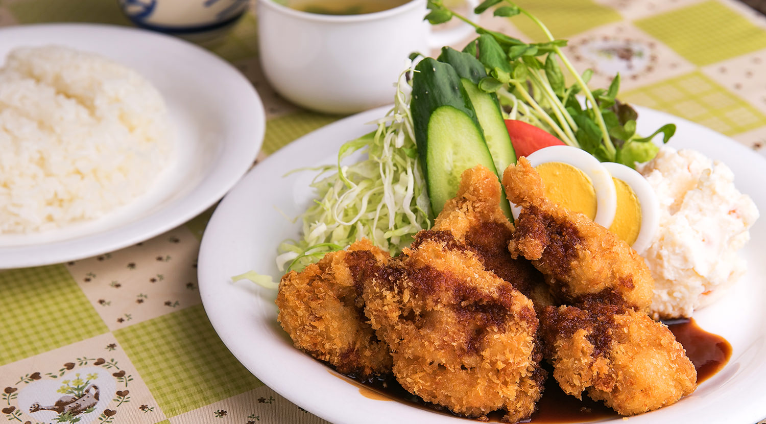 1985(昭和60)年からスタートし、今では地域の人たちにとって無くてはならない憩いの場であり、加藤登紀子の魚梁瀬ダム湖上コンサートのポスターや、室戸の情報誌だった「月刊あおぞら」などが店内にあり、地元愛と昭和の香りが残っているお店です。ドリンク類とともに、ご飯・定食ものが充実。なかでも、大評判はチキンカツ定食。工夫を施したサクサクの衣に、シンプルに味付けした自家製ソースが絶妙にマッチします。つけあわせの野菜は、できる限り地元産のものを使用。ドレッシングも市販品に頼らず、手づくりするという嬉しいこだわりです。さらにお米は「農薬は最低限度、最初の苗の時にちょっとだけで、あとは使用しません。」というご主人自らが栽培・収穫したものを使用しています。