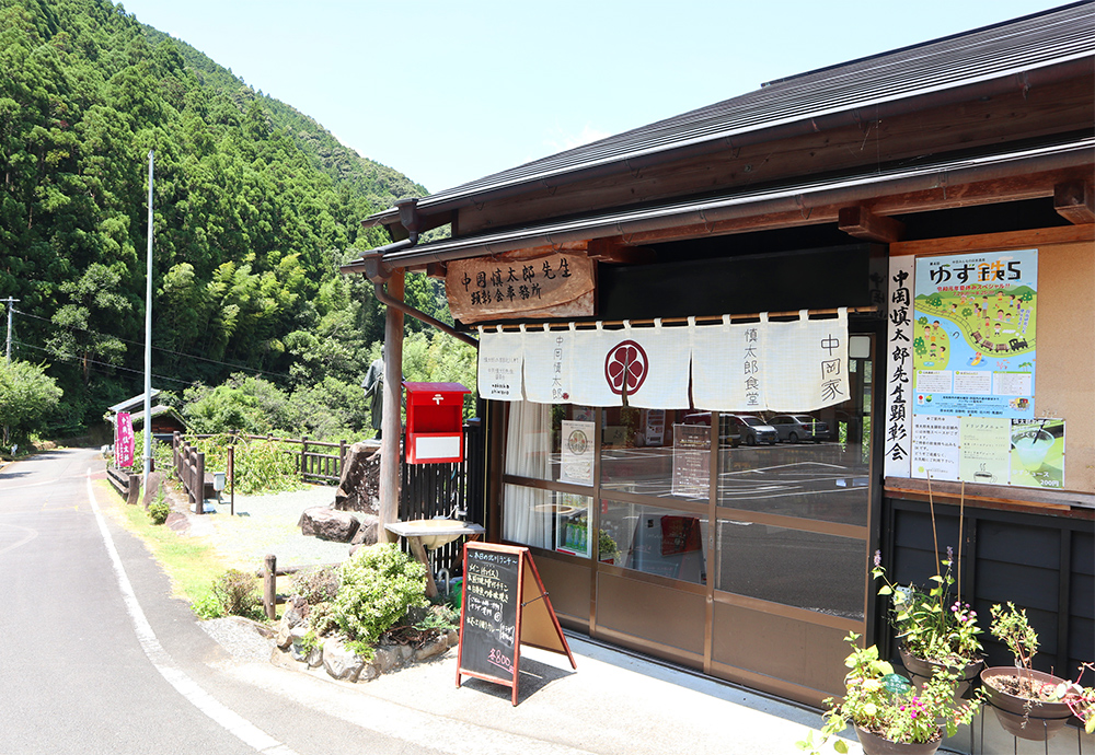 昼食は中岡慎太郎館の向かいにある「慎太郎食堂」で取ります。地元で採れる食材を優先に、メイン(2種からチョイス)が日替わりで変わるきたがわランチや、料理人から上質と定評のある北川村のジビエ肉を使った北川志士(猪)カレー。慎太郎が見た風景を眺めながら食べるご飯はとても至福のひとときでした。