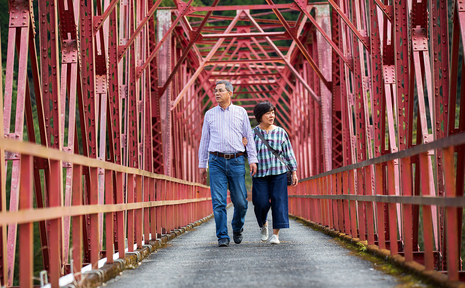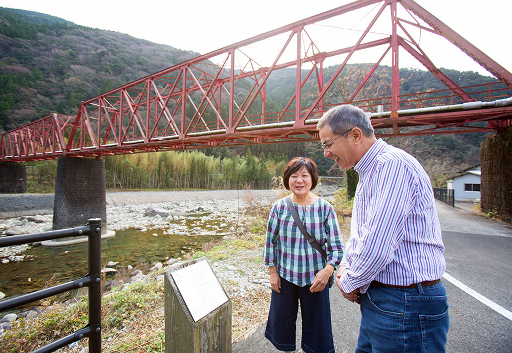 北川村にある「小島橋」は、森林鉄道遺構のなかで最も大規模な橋。説明板には1932(昭和7)年に建設されたとありました。それが立派に今もその姿を留めています。橋を歩くと、気持ち良い風景と共に、奈半利川のキレイさにうっとりします。