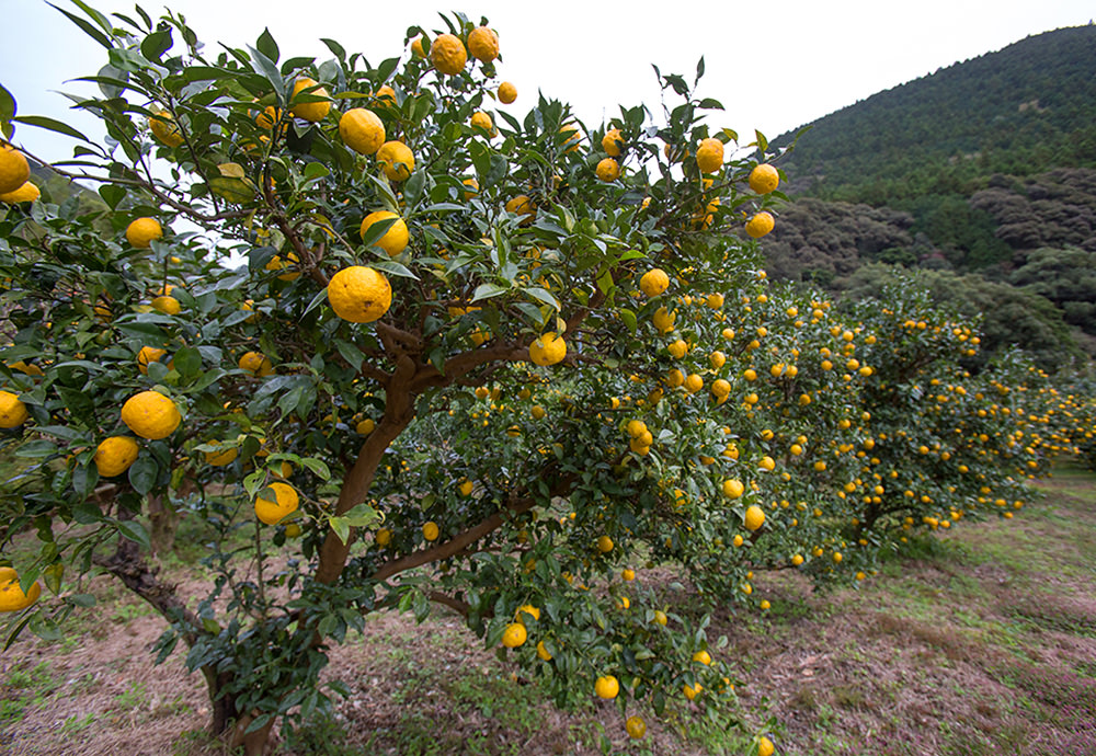 そこから少し車で移動すると、畑が広がり、木には黄色いピンポン玉のような柚子がなっています。高い木を見ながら「実生柚子だね。今、欧州やシンガポールへも輸出されているんだ。北川村の柚子の栽培は江戸時代から。その始まりのきっかけを作ったのは中岡慎太郎で、柚子を塩代わりに防腐や調味料として使おうと、村民に作付けを奨励したんだ。」と主人が豆知識を披露。ここでも慎太郎の話で盛り上がりました。