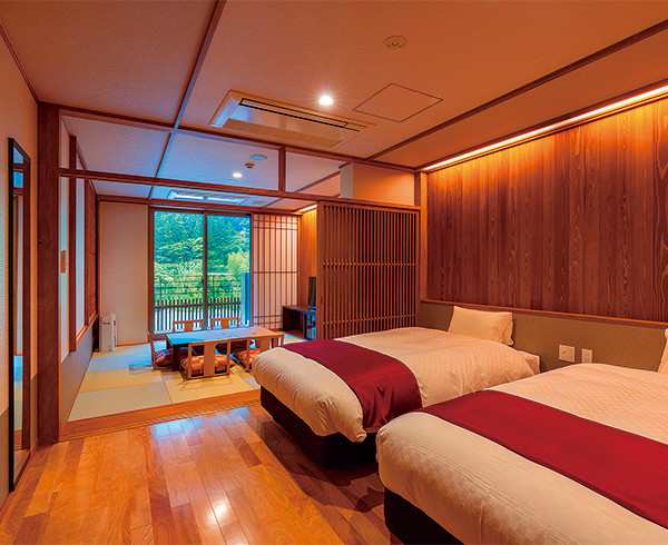 料金/(2名1室平日、夕朝食事付、税別)ダブル13,000円、ツイン14,000円、和洋室(展望檜風呂付)19,000円