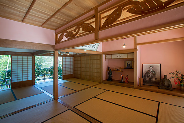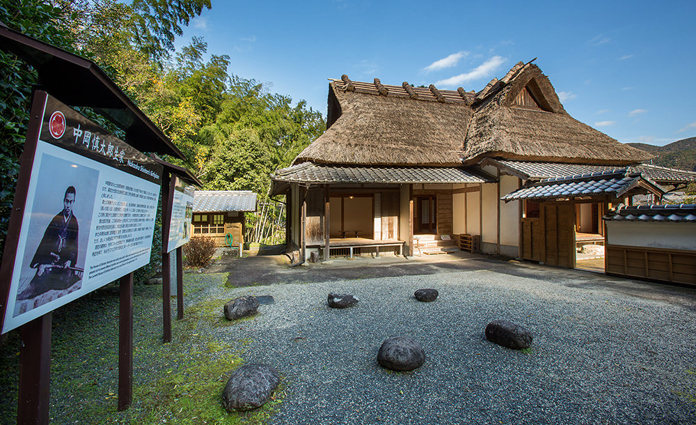 慎太郎は天保9年(1838)4月13日、茅葺き屋根、肘屋建築の家で誕生しました。庄屋の家には必ず勘定の間があり、庭に面した式台、次の間、客間は公の間、その他の奥の間を私生活に使われています。昭和42年(1967)に復元、県指定史跡。
